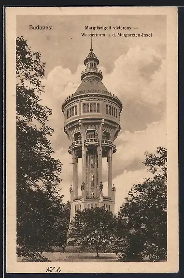 AK Budapest, Wasserturm a. d. Margareten-Insel