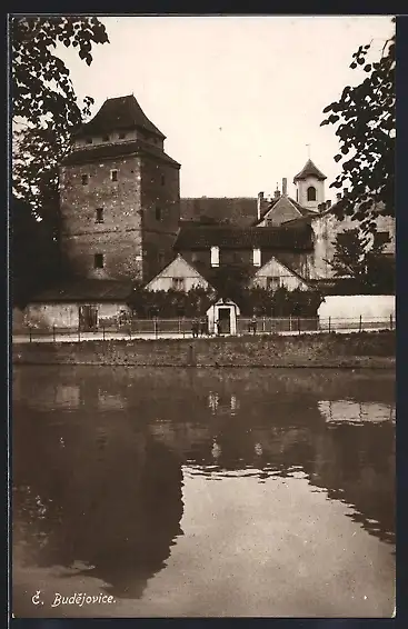 AK Budweis / Ceske Budejovice, Ortspartie am Flussufer