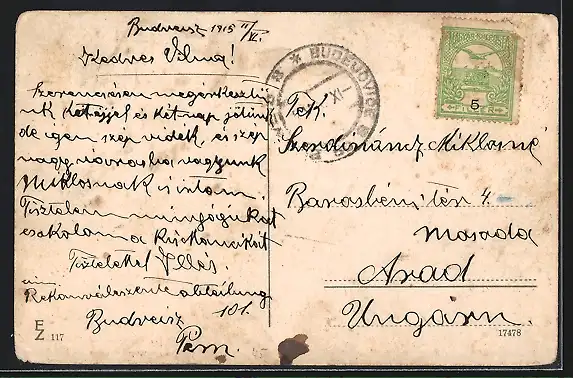 gelaufen 1915, Ecken bestoßen, guter Zustand