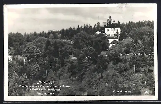 AK Budweis / Ceske Budejovice, Sokolov, Ozdravovna gremial nem. poj. v Praze v Porici