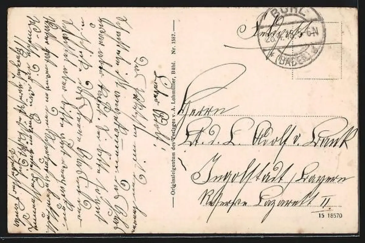 alte Ansichtskarte, gelaufen, Eckknicke oben links und unten rechts, guter Zustand