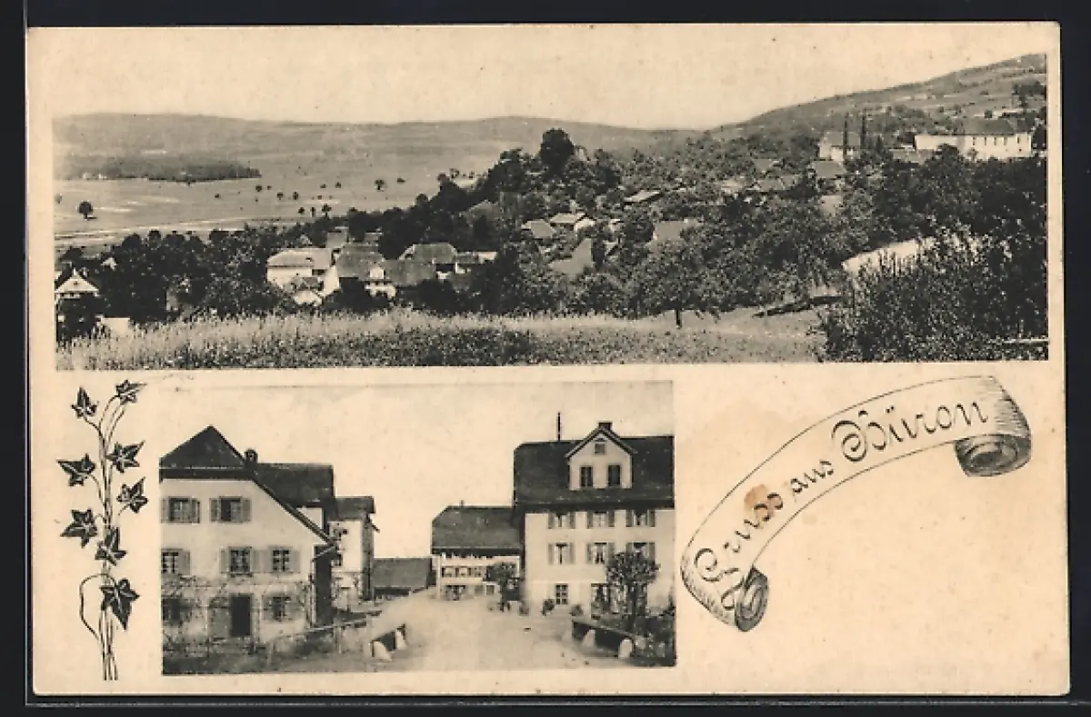 AK Büron, Panoramablick auf die Stadt, Strassenpartie