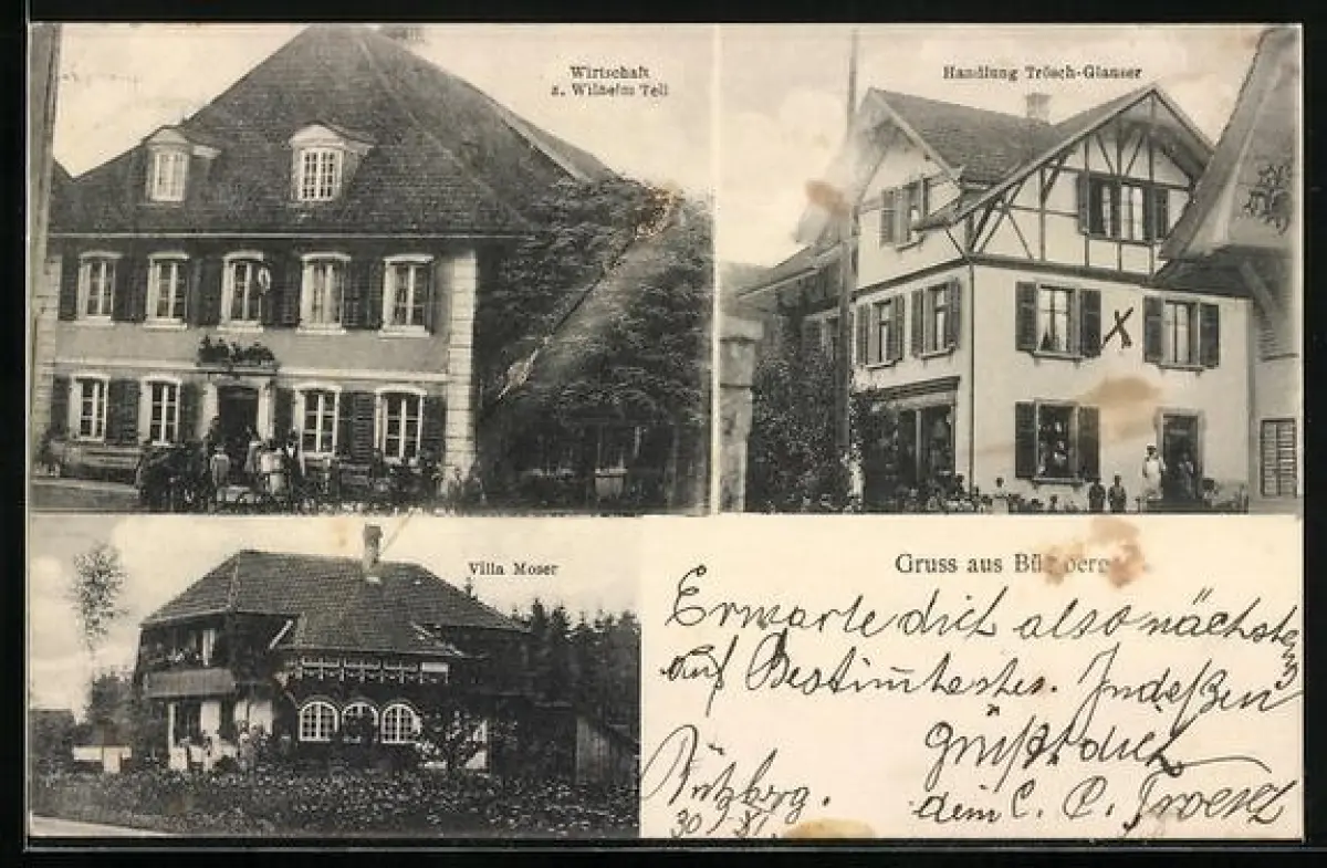 AK Bützberg, Gasthof z. Wilhelm Tell, Handlung Trösch-Glauser, Villa Moser