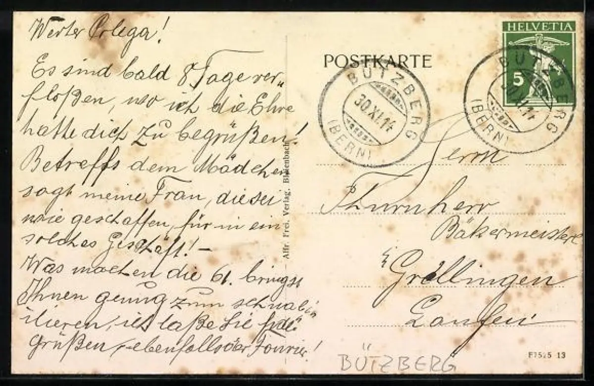 gelaufen 1914, Oberflächenschaden, sonst guter Zustand