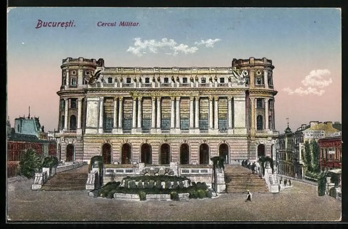 AK Bukarest, Cercul Militar, Gebäudeansicht, Restaurant Modern