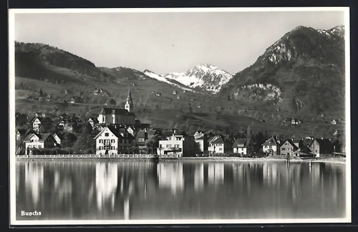 AK Buochs, Uferpartie mit Kirche