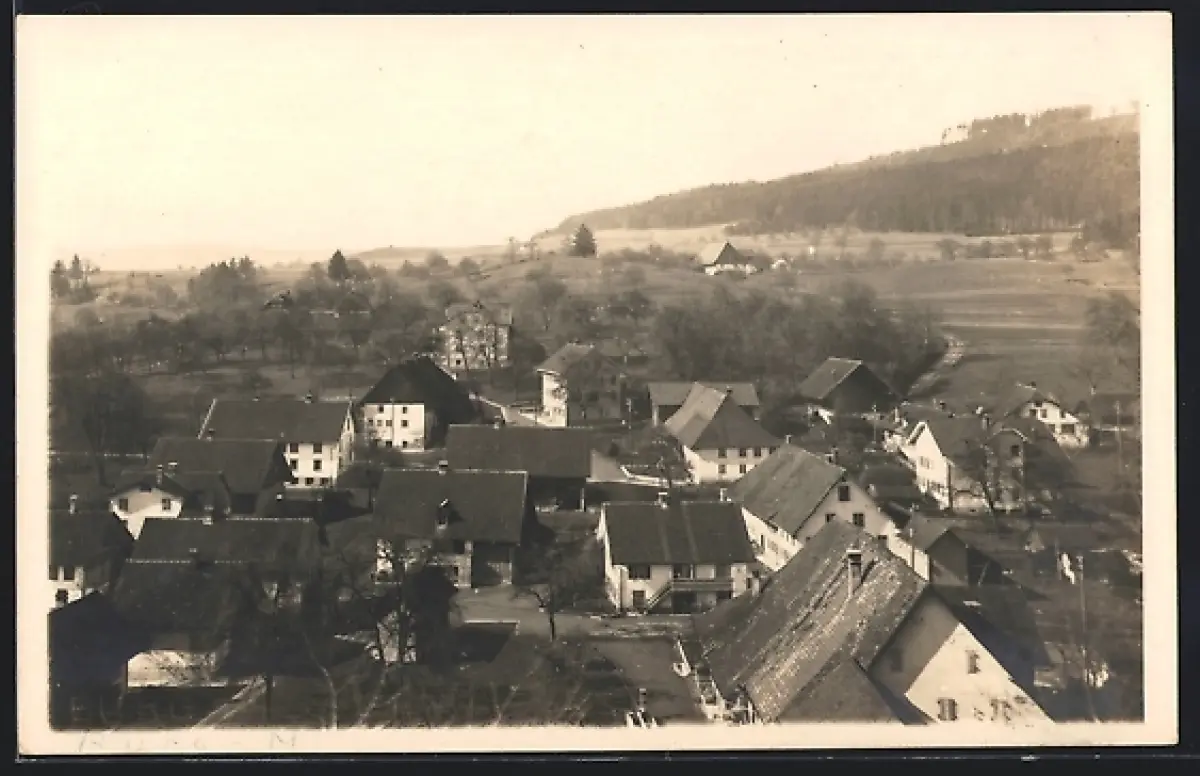 AK Burg /Aargau, Ortsansicht aus der Vogelschau gegen den Wald