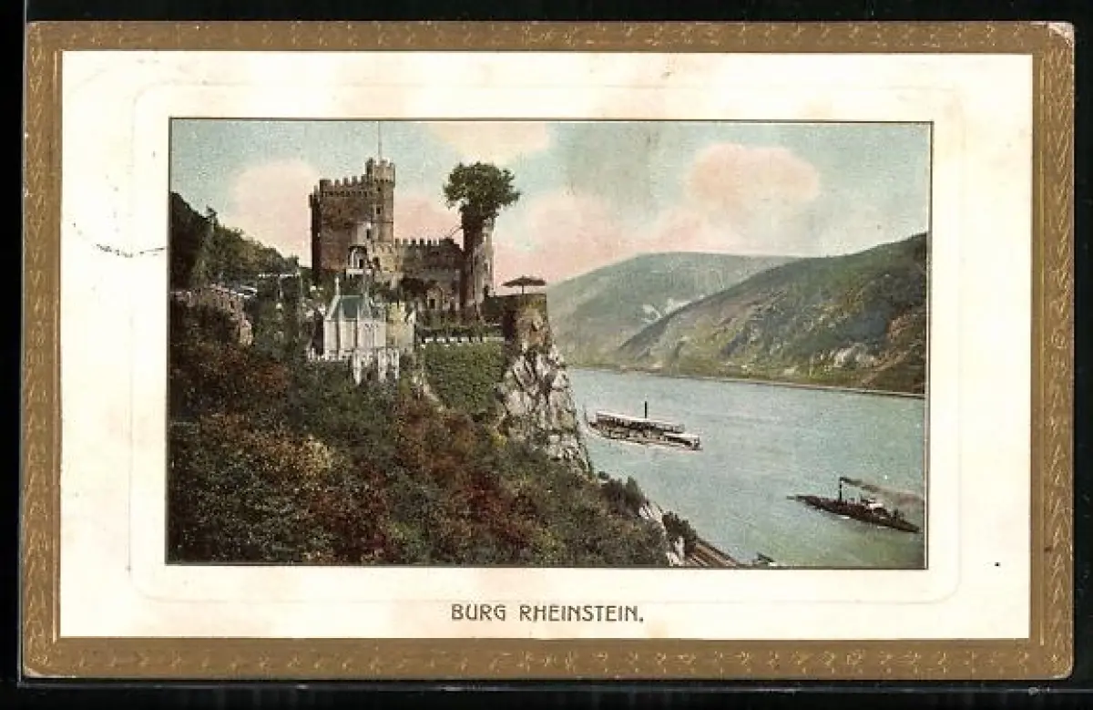 AK Burg Rheinstein, Burg mit Rheinpanorama