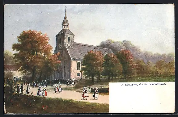 AK Burg /Spreewald, Kirche während dem Kirchgang