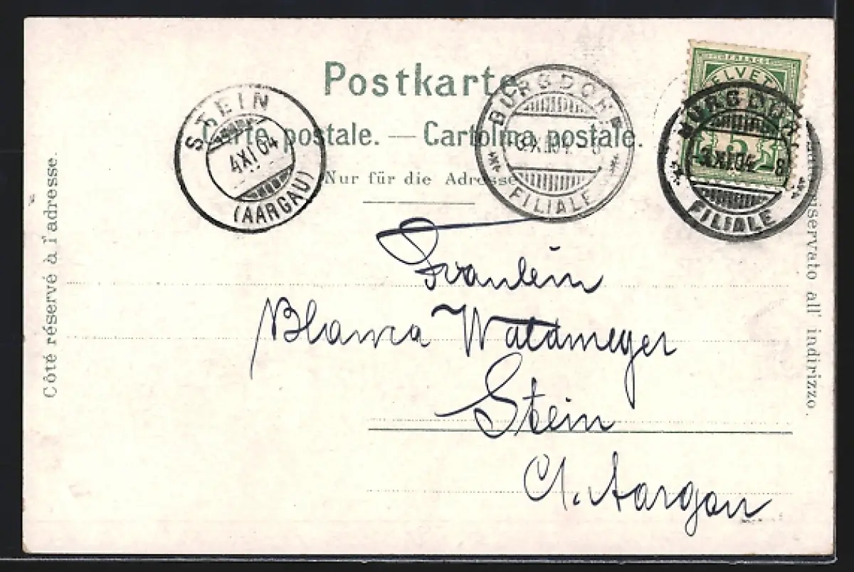 alte Ansichtskarte, gelaufen 1904, Stempelspur, guter Zustand