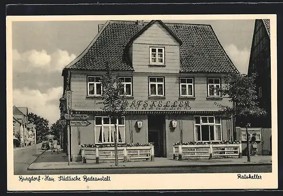 AK Burgdorf i. H., Städtische Badeanstalt, Hotel Ratskeller R. Rühmann, Poststrasse 14