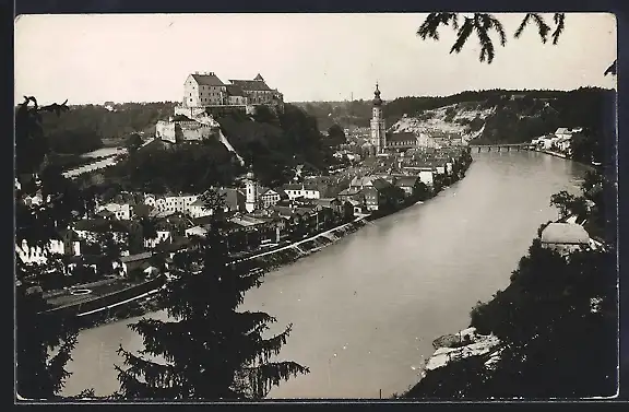 AK Burghausen a. d. Salzach, Ortsansicht mit Burg und Kirche