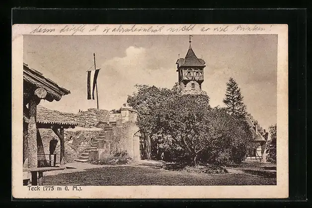 AK Burgruine Teck, Ansicht mit Mauer und Treppe