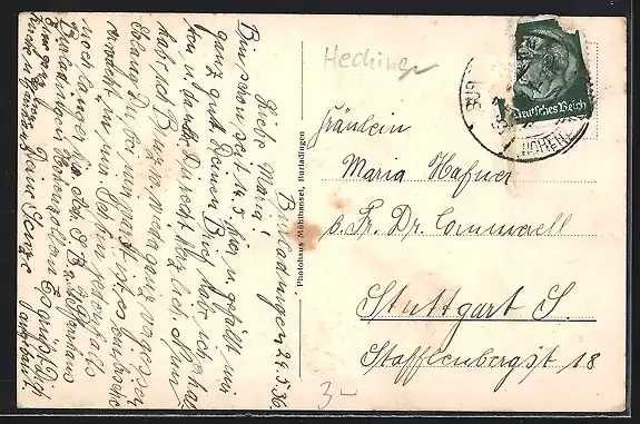 alte Ansichtskarte, gelaufen 1936, Briefmarke entfernt, guter Zustand