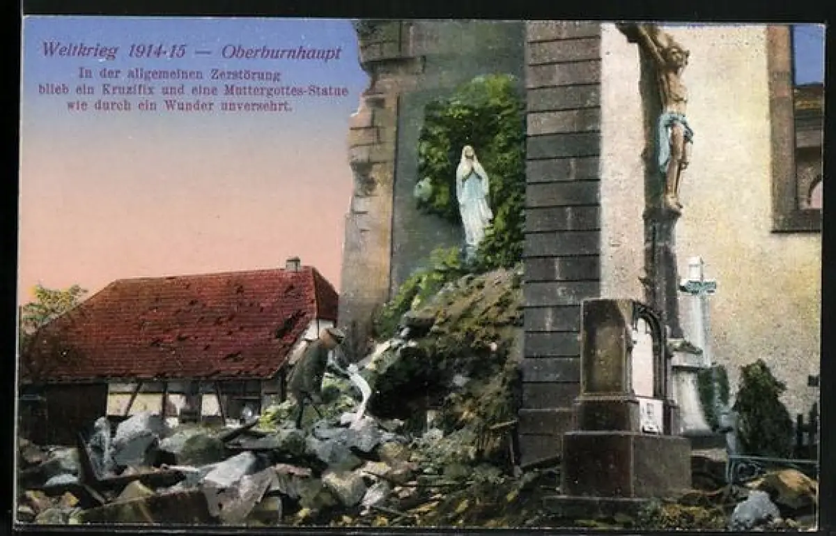 AK Burnhaupt-le-Haut, Ortspartie mit Kruzifix und einer Muttergottes-Statue