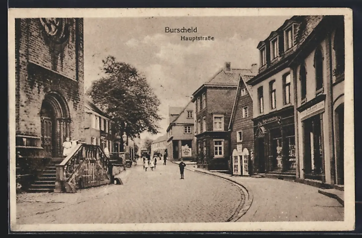 AK Burscheid / Rheinl., Hauptstrasse mit Geschäften