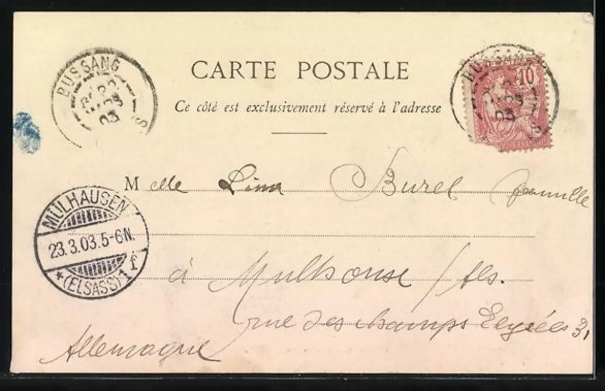 gelaufen 1903, Eckknick oben li. u. unten re., Stempelspur, guter Zustand