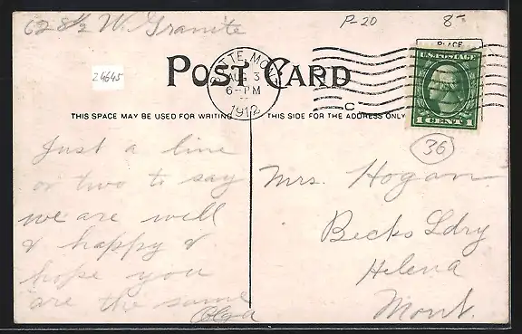 gelaufen 1912, Eckknick li. oben, guter Zustand