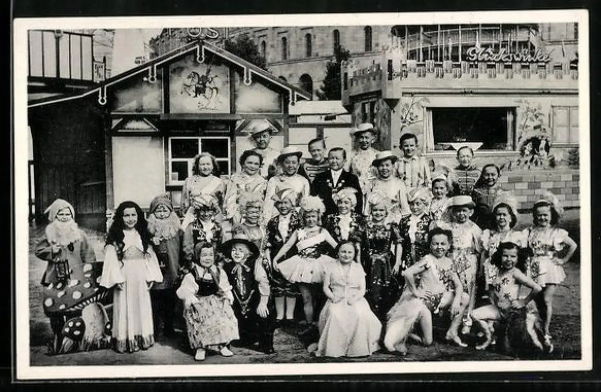 AK C.H. Schäfers Circus-Stadt Liliput, Liliputaner-Artisten in Kostümen