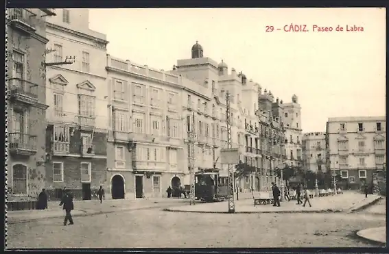 AK Cadiz, Paseo de Labra, Strassenbahn