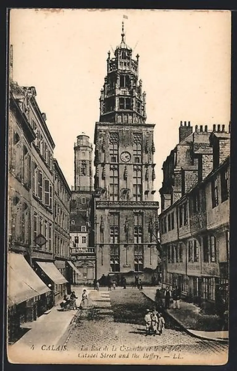 AK Calais, La Rue de la Citadelle et le Beffroi