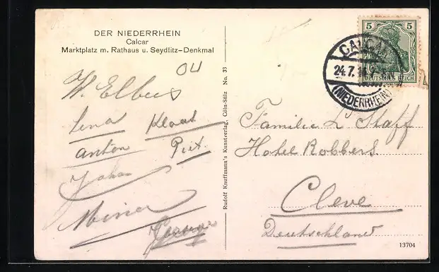 AK Calcar, Marktplatz mit Denkmal