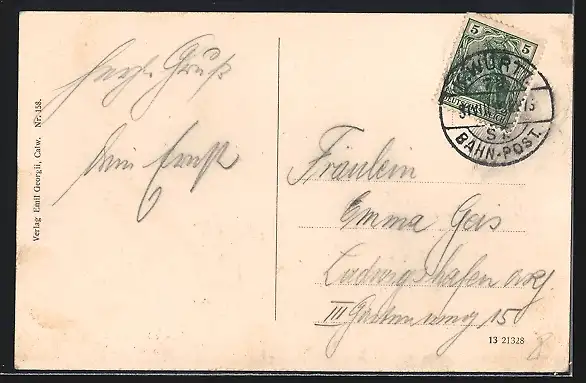 alte Ansichtskarte, gelaufen, Eckknick li. unten, Abriebspur re. oben, guter Zustand