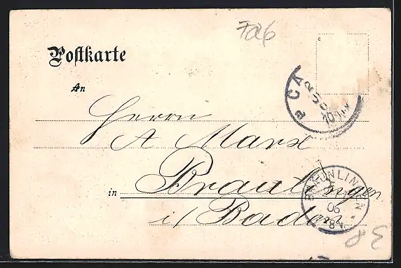 alte Ansichtskarte, gelaufen 1906, Briefmarke entfernt, rückseitig Oberflächenschaden, Eckknicke li. oben, guter Zustand