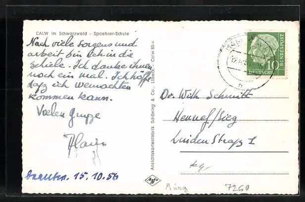 AK Calw im Schwarzwald, Spoehrer-Schule in vier Ansichten