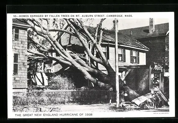 AK Cambridge, MA, The great New England Hurricane of 1938, Homes damaged by fallen trees on Mt. Auburn Street, Unwetter