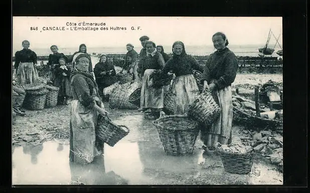 AK Cancale /Côte d`Émeraude, L`Emballage des Huîtres, Muschelfischer mit Körben