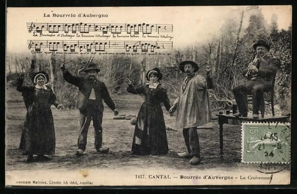 AK Cantal, Mann sitzt mit einem Dudelsack auf einem Tisch