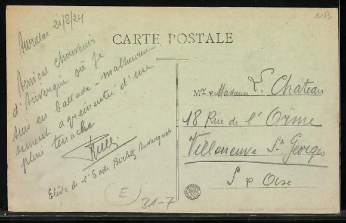 Personenbezogene Daten auf der Rückseite der Karte wurden durch blauen Textmarker unkenntlich gemacht. Die blauen Stellen sind auf die Vorderseite durchgeweicht und wirken sich negativ auf das Postkartenfoto aus