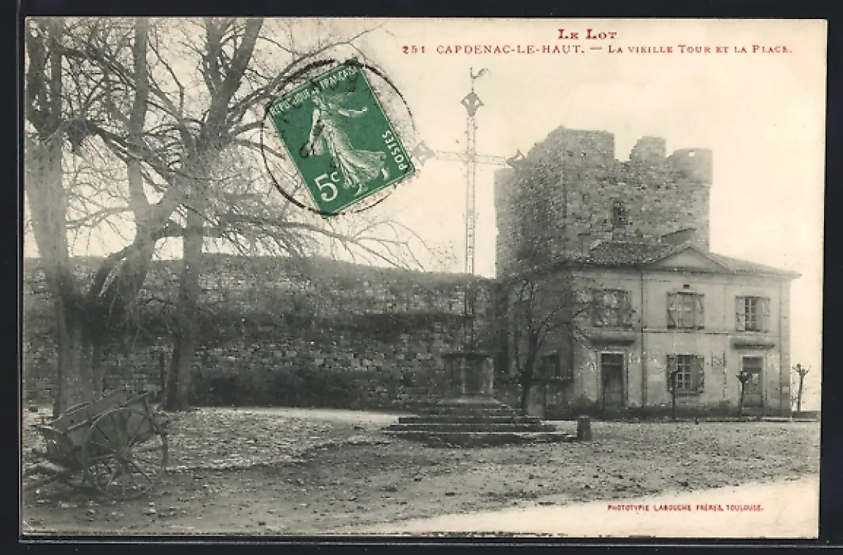 AK Capdenac-le-Haut, La vieille Tour et la Place