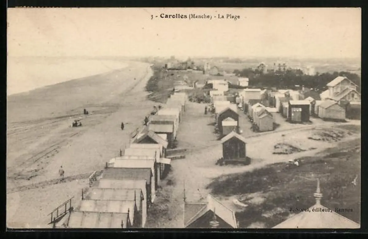 AK Carolles /Manche, La Plage avec cabines de bain et vue sur la mer