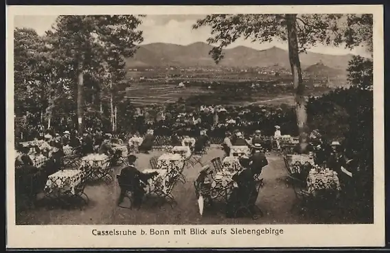 AK Casselsruhe b. Bonn, Blick aufs Siebengebirge vom Hotel Casselsruhe