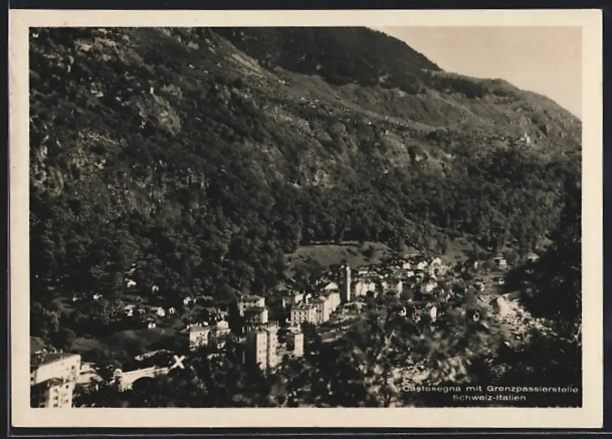 AK Castasegna, Teilansicht mit Grenzpassierstelle Schweiz-Italien