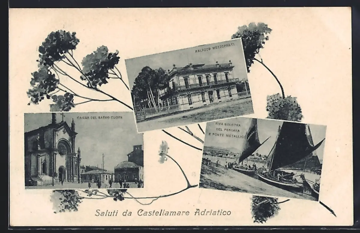 AK Castellamare Adriatico, Palazzo Mezzopreti, Chiesa del Sacro Cuore, Riva sinistra del Pescara e Ponte Metallico