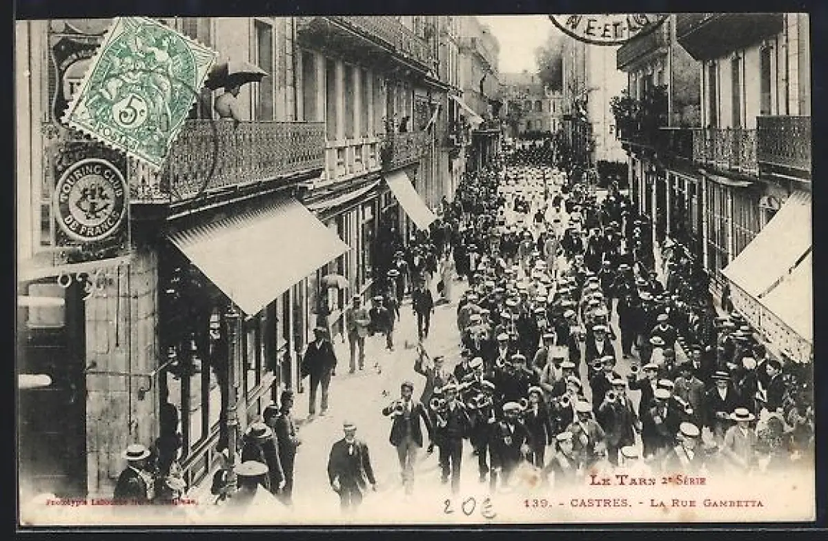 AK Castres, La Rue Gambetta animée par une foule nombreuse