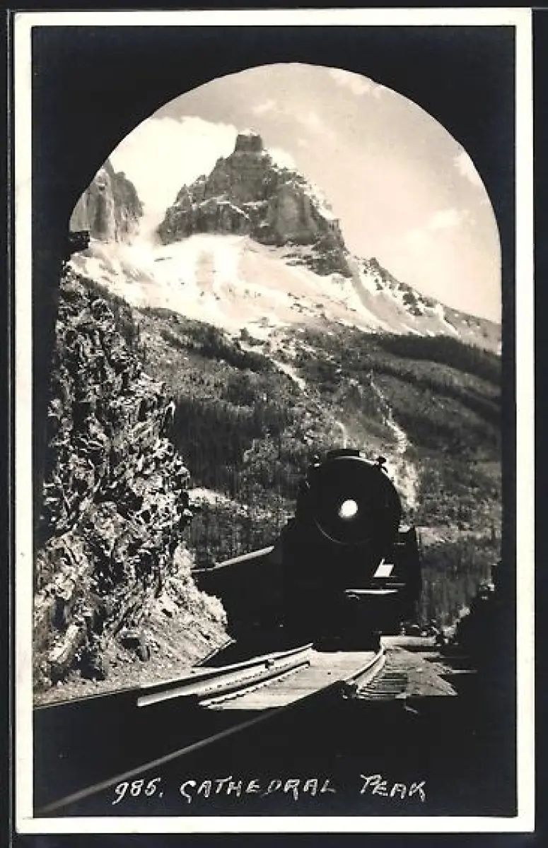 AK Cathedral Peak, Eisenbahn aus einem Tunnel heraus gesehen