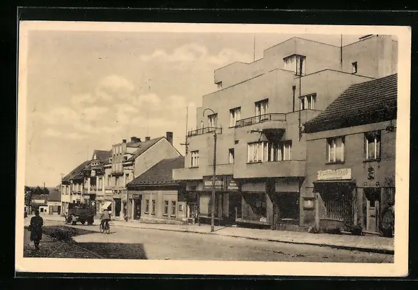 AK Celákovice, Strassenansicht mit Geschäftshäusern