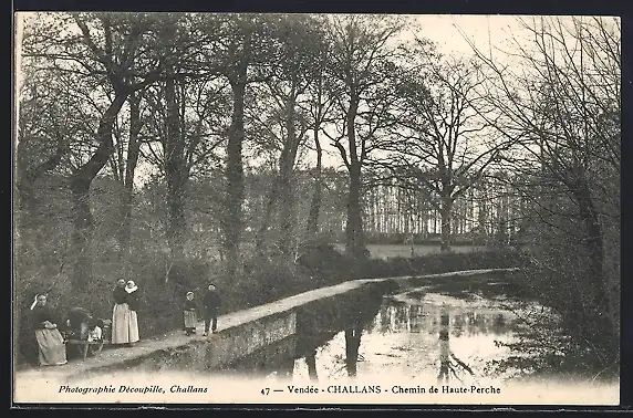 AK Challans, Chemin de Haute-Perche avec promeneurs près de l`eau