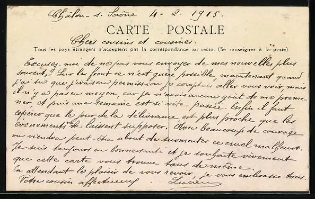 Ich bin sehr zufrieden mit dem Kauf. Es handelt sich hier nicht um ein Sammlerstück, sondern um ein Stück Familiengeschichte. Diese Karte wurde von meiner Urgroßmutter an meine Großeltern geschrieben. Ein zufälliger Netzfund. Vielen Dank!