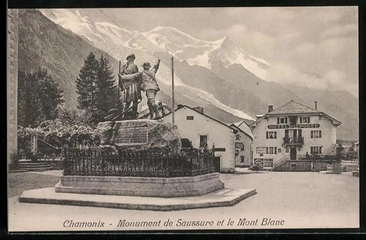 AK Chamonix, Monument de Saussure et le Mont Blanc