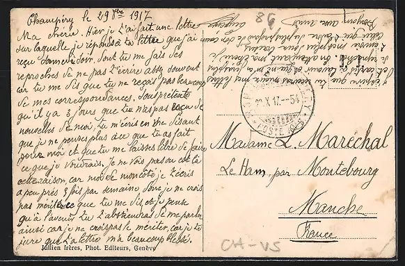 gelaufen 1917, Eckknicke unten und re. oben, guter Zustand