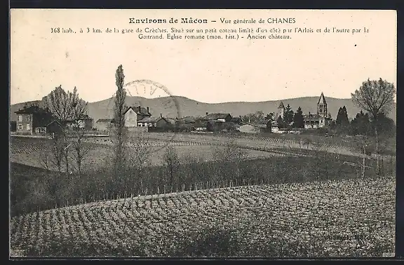 AK Chanes, Vue générale du village avec église romane et ancien château