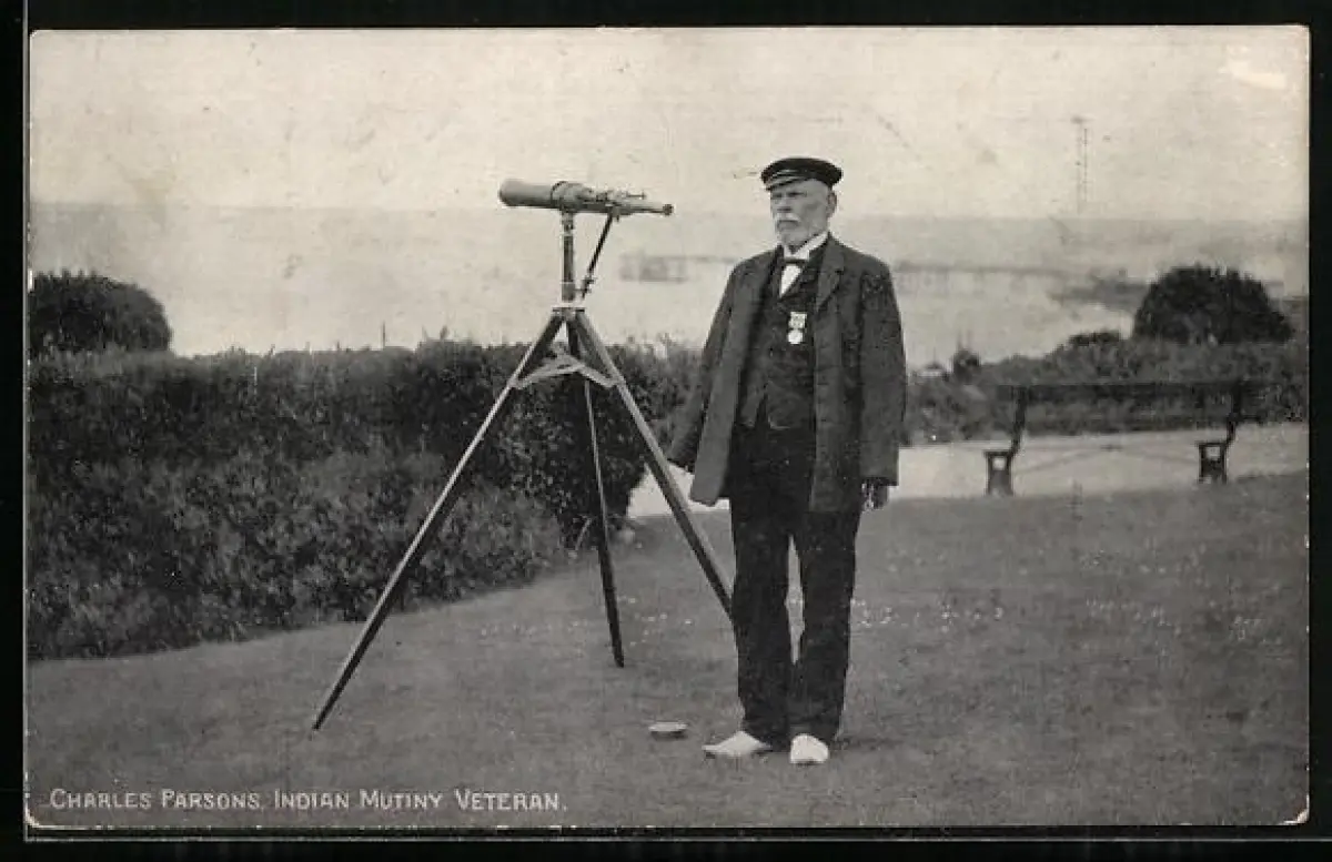 AK Charles Parsons mit Fernrohr, Indian Mutiny Veteran