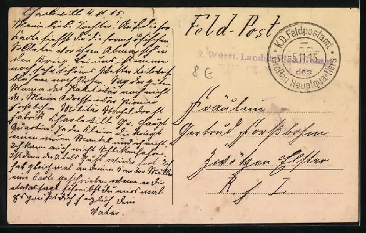 alte Ansichtskarte, gelaufen 1915, Eckknick oben re., guter Zustand