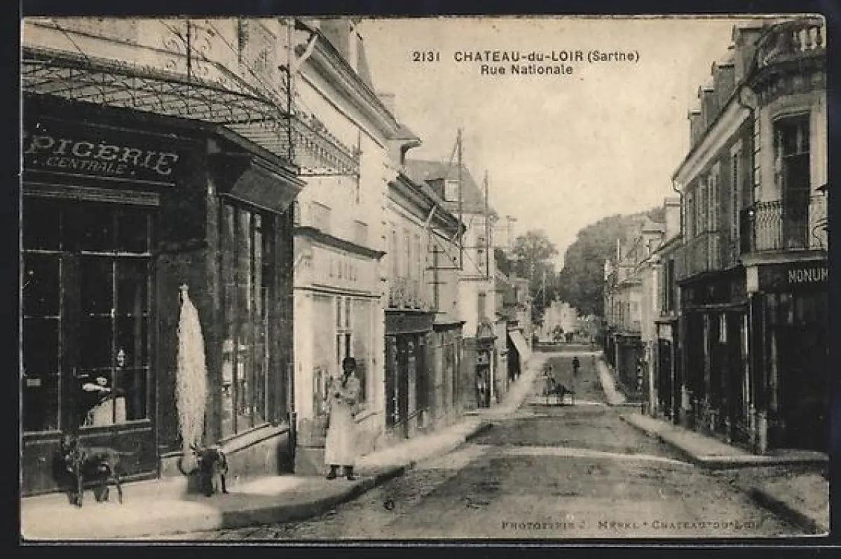 AK Château-du-Loir /Sarthe, Rue Nationale animée avec des commerces et passants