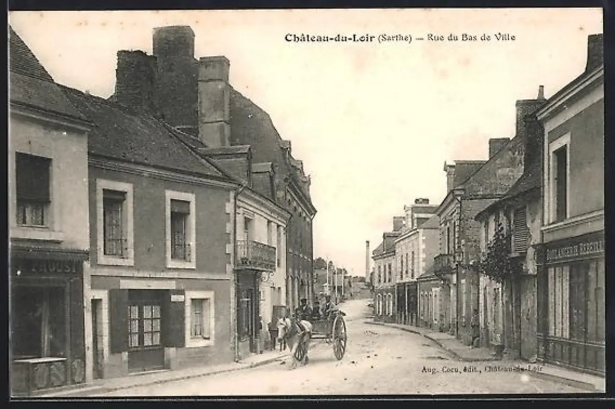 AK Château-du-Loir /Sarthe, Rue du Bas de Ville avec charrette et piétons